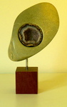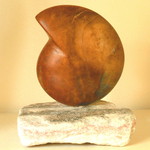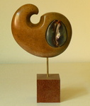 2009abstract beeldje van een zeegolf waar een schelp in is verwerkt.