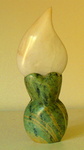 2009beeldje bestaande uit 2 gedeeltes een vrouw vorm met een vlam of een traan.